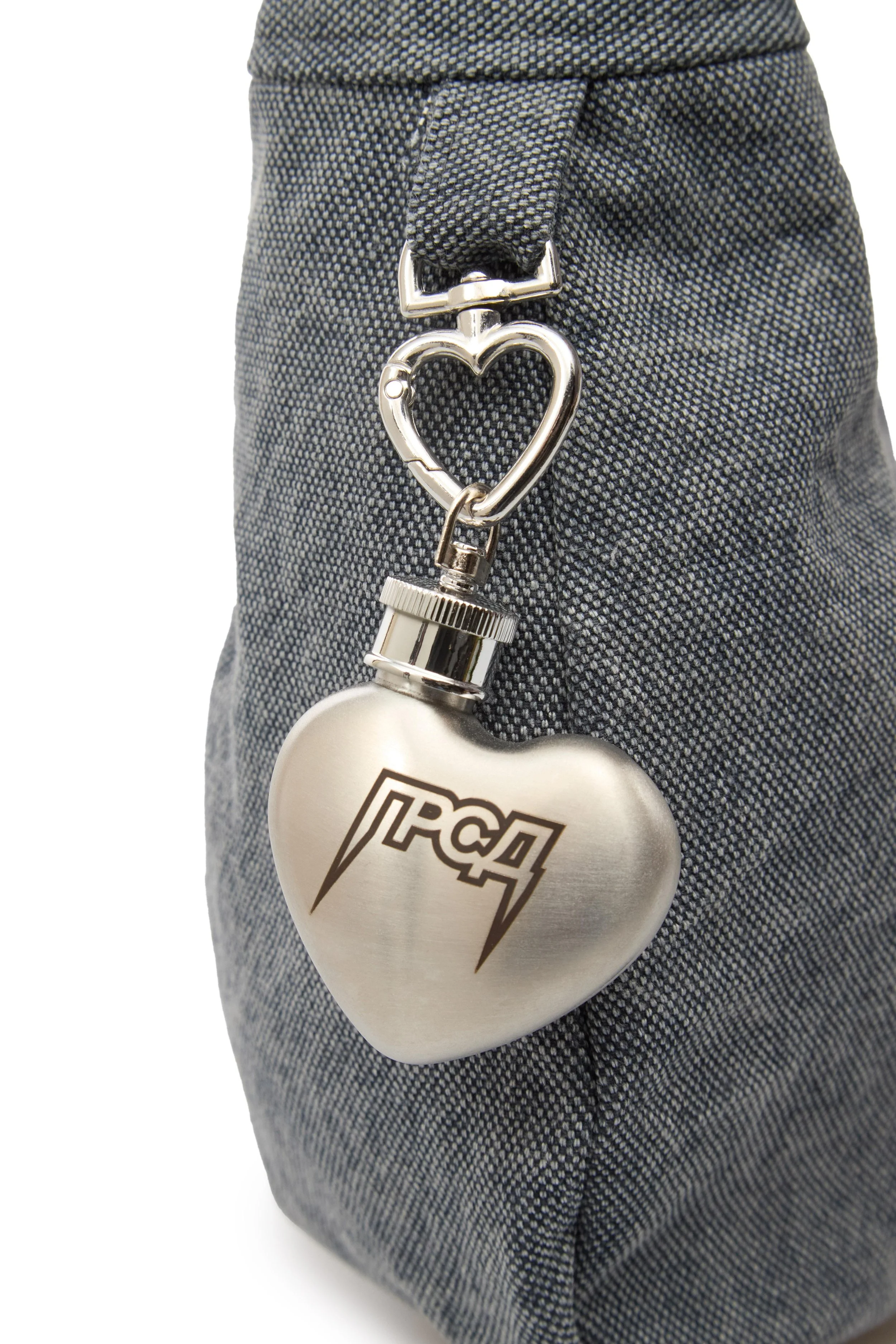 I also love the combination of fabric and metal. That interest eventually led to the idea of creating a bag with a heart-shaped flask inside, where you can keep your drink.